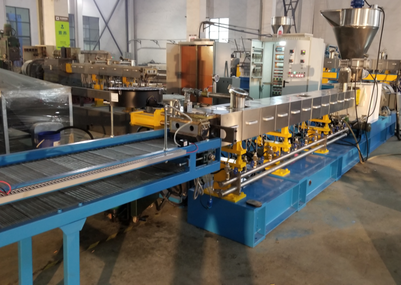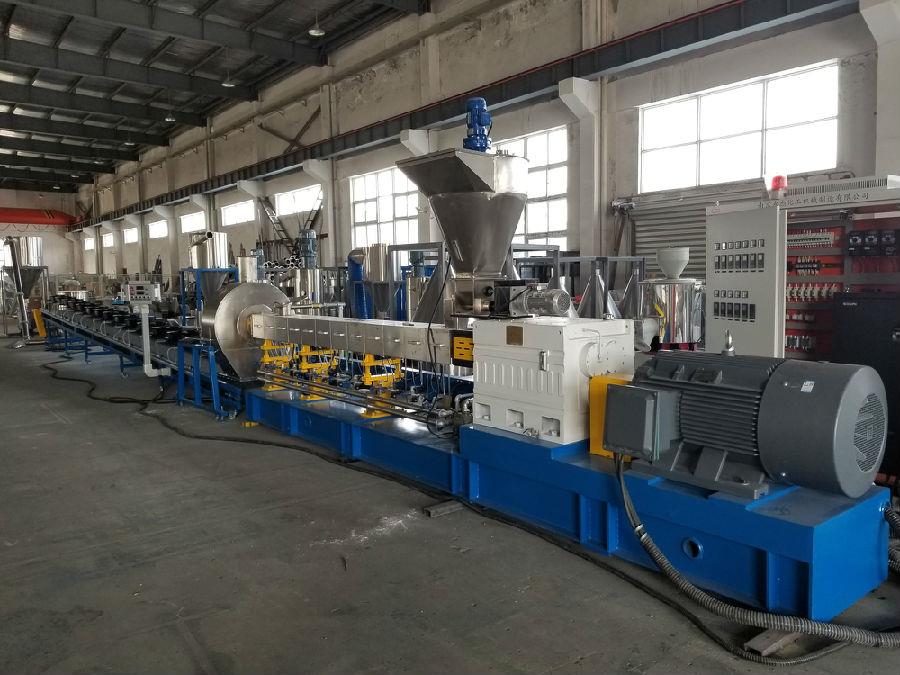 聚乳酸是一種透明、脆性的熱塑性塑料,具有良好的拉伸和彎曲強度,但韌性較差。為了擴(kuò)大其應(yīng)用范圍,通常與PBAT混合使用,以增加其韌性,同時保持其生物降解性。采用雙螺桿造粒機,將聚乳酸、PBAT和玉米淀粉混合成顆粒狀。然后將可生物降解顆粒注塑成型或吹制成薄片、薄膜和容器。其主要應(yīng)用領(lǐng)域是一次性包裝市場和醫(yī)用植入物。由于聚乳酸對水的敏感性,雙螺桿造粒機應(yīng)采用以下冷卻制粒方法:風(fēng)冷輸送帶造粒。